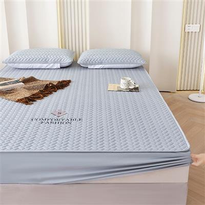 三角格牛奶绒抗菌夹棉床笠