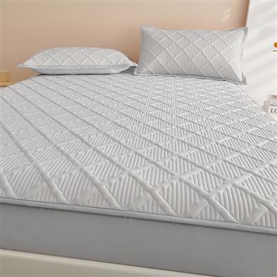三角格牛奶绒抗菌夹棉床笠