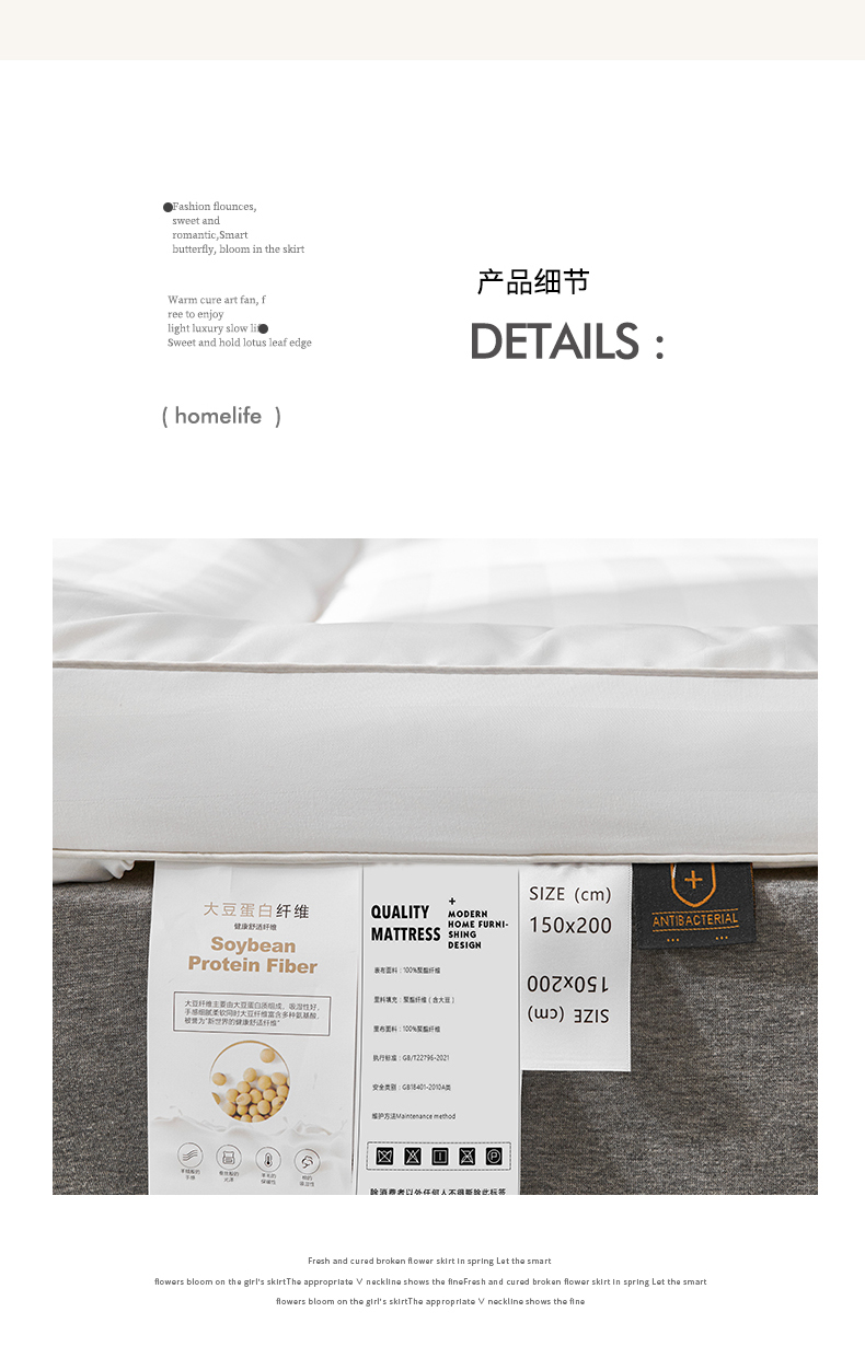 抗菌宽边绣花床垫-fashion